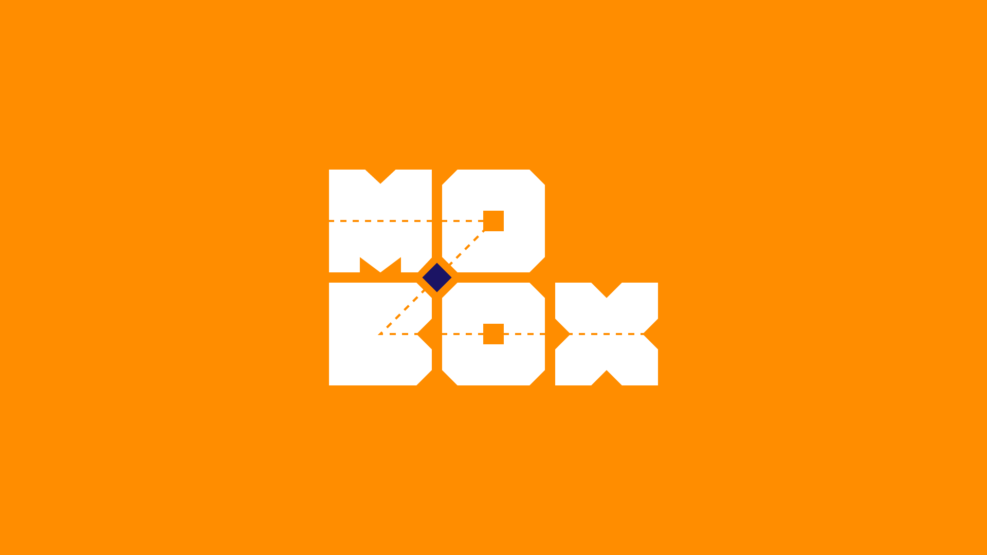 The logo has been created with relatively square-shaped characters for the text, representing the cube-shaped MOBOX units that can stack in different orientations due to their compact nature. The typography features a tracking path along with a current location marker, which is also used as a breakpoint between paragraphs, an underlining and final full stop feature, or simply to hold the design over multiple pages, thereby unifying the branding.